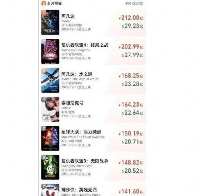 而且从当今的走势来看,《哪吒2》入围前五指日而待,距第七名《蜘蛛侠·袼褙无归》只差几亿票房。