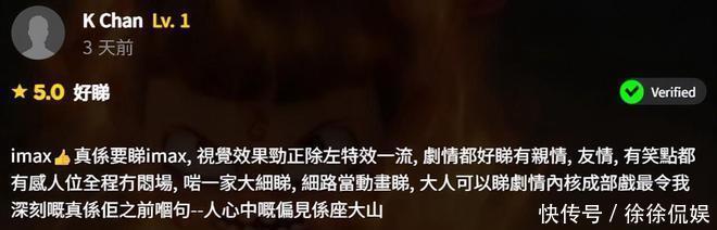 除此以外,这位不雅众则是进行了二刷,宣称固然我方还是在内地看过,但据说香港上映后再看一遍依旧很漂泊。