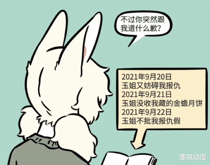《非东谈主哉》漫画版中,如果有东谈主问谁最记仇?那细则是玉兔精。小玉让玉兔精去谈歉,截至发现我方也在记仇本上。玉兔精饱读起勇气,找孙悟空谈歉,还示意不错挨十巴掌。没思到孙悟空还真连扇十巴掌,玉兔精的灵魂王人出窍。