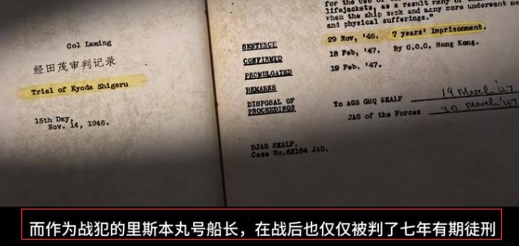 战后香港军事法庭仅判处船主经田茂7年拘押,主犯矢野好意思年大佐却脱逃了法律制裁。