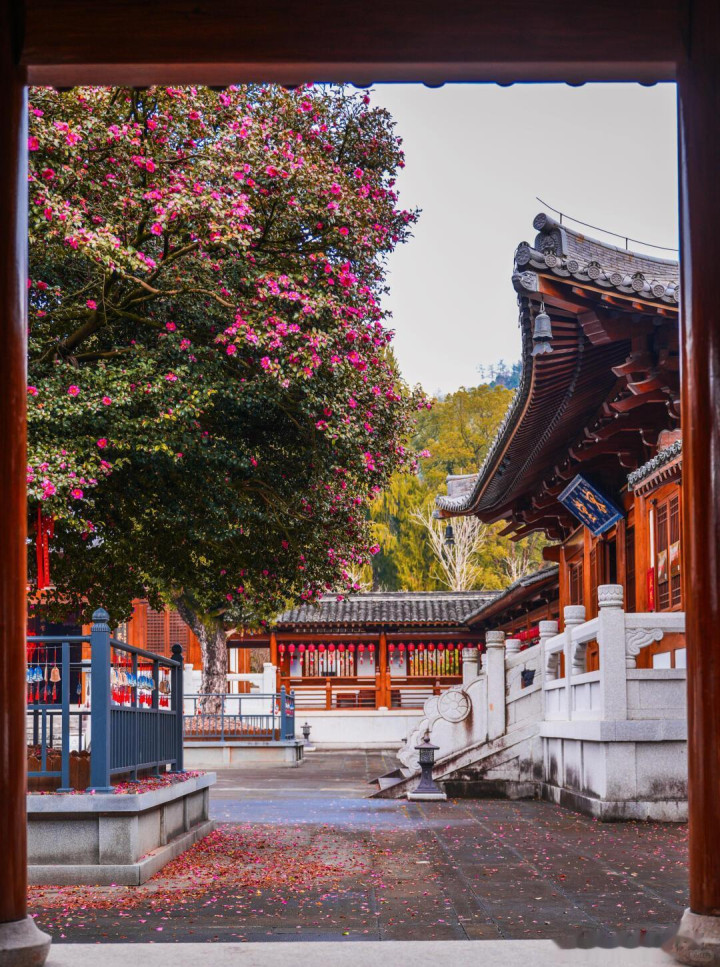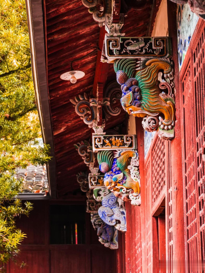 此行最大的朝圣,是献给延福寺的。这座始建于元代的古寺,大殿全凭榫卯结构,无须一枚铁钉。我仰头看着那些重重叠叠、如莲花般敞开的斗拱,耳边仿佛响起曩昔梁林佳耦测绘时的柔声同样。殿内一株老茶花开得正盛,红花映着深褐色的千年梁柱,那一刻,时光是静止的。好意思,且有劲量。