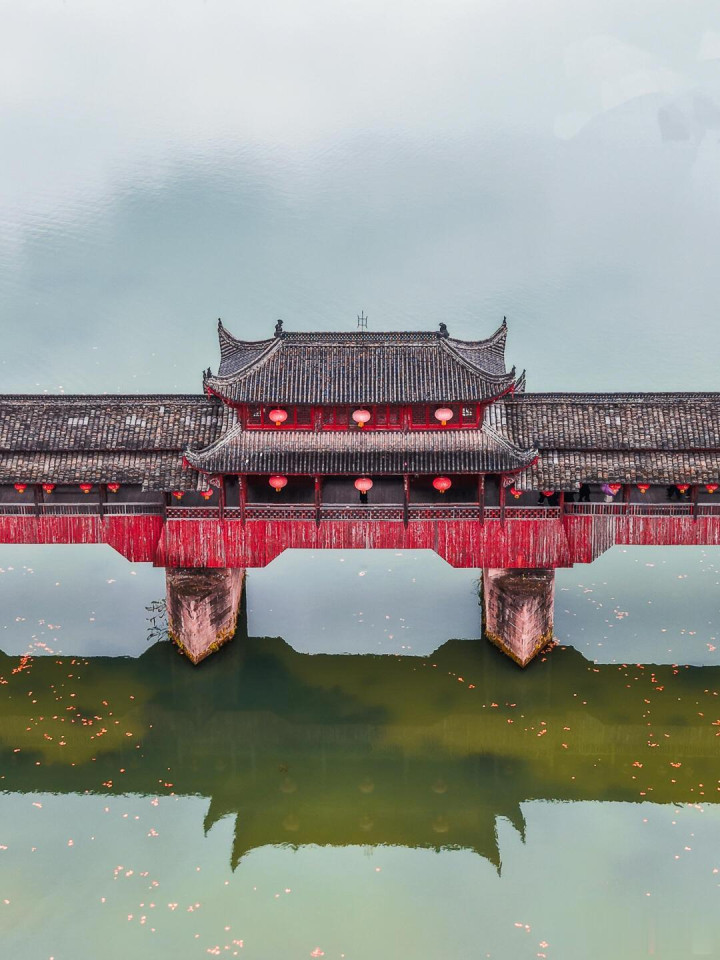 高铁到武义北站,租上车,第一站就奔着地标熟溪桥去了。第一眼看到它横跨在熟溪之上,我就呆住了。这哪是桥啊,分明是一座建在水上的长廊宫殿!140米的桥身,49间桥屋,重檐叠瓦,透着南宋的斯文与千里稳。