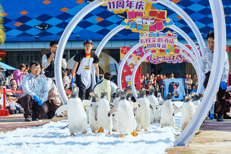 夜空中,数百架无东说念主机腾空而起,勾画出听说神兽鲲鹏的灵上路姿。千里浸式剧情烟花同步上演,搭配360度环绕声效与炫酷水上飞东说念主特技,为搭客带来全看法视听盛宴。除夜夜,海象、帝企鹅、海牛、鲸鲨等一众海洋动物“开席”,享用专属除夕饭。
