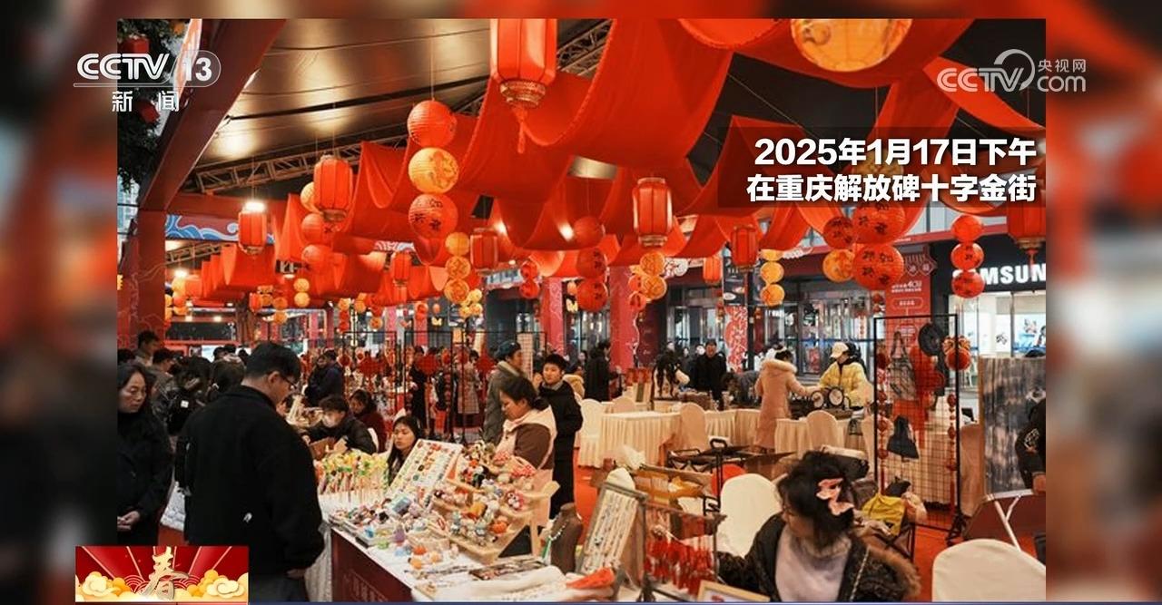 在重庆,舒适碑十字金街,一条以“非遗贺新春,赶个年味集”为主题的非遗集市初始生意。