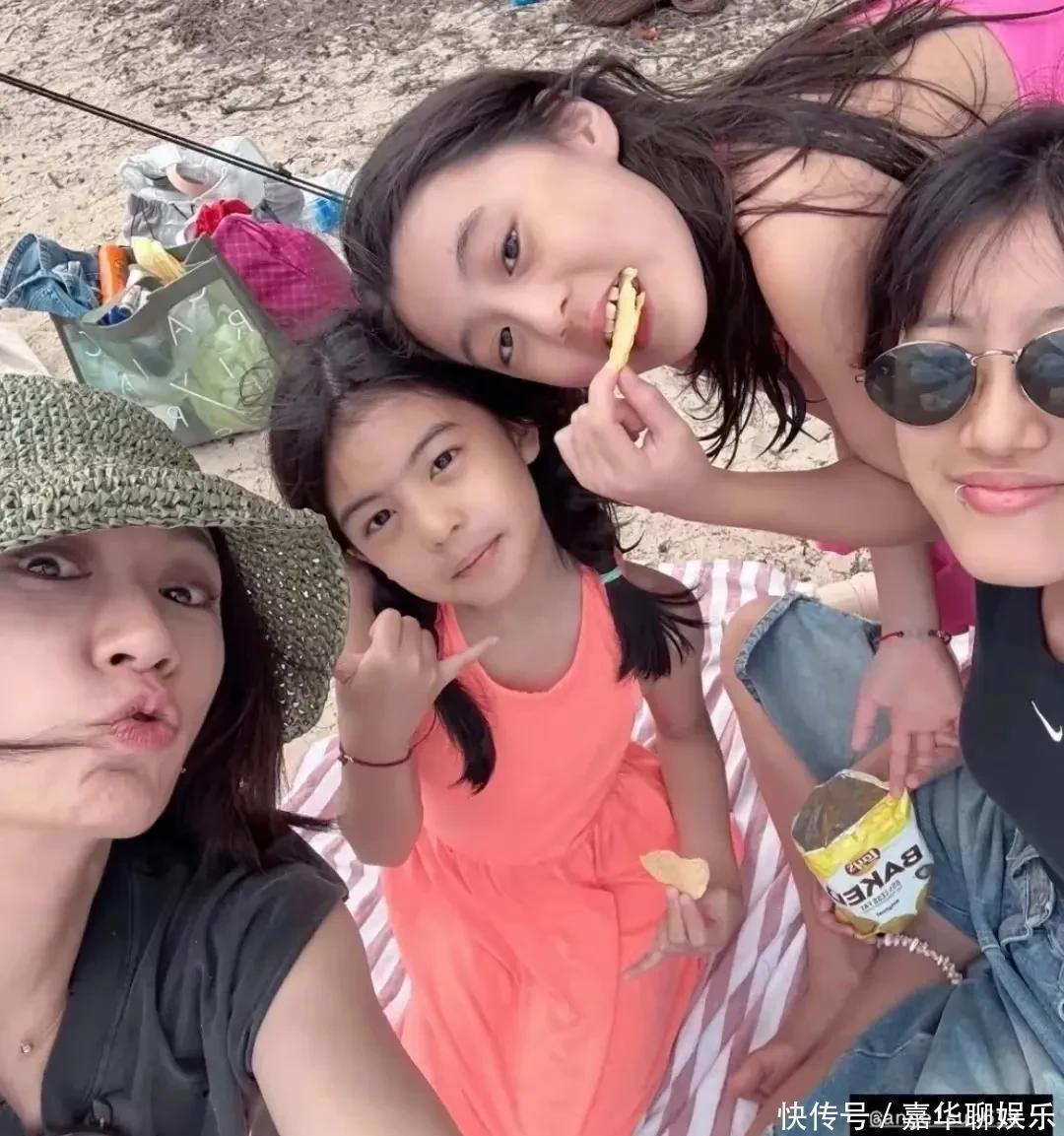 沙滩上的合照更是让东谈主忍俊不禁。姐妹俩王人刷刷比着耶,连歪头的角度都像用尺子量过似的,梧桐妹反戴帽子,洞洞鞋踩在沙里,瘦了些的身影像根挺拔的芦苇,透着少年东谈主专有的轻细;波妞穿著小泳衣站在前头,那双腿哟,直溜溜的,一看就随了爸爸修杰楷的好基因——贾静雯一米六的个头虽情切,但这孩子像雨后的春笋,照着这势头长下去,改日怕是要把姆妈衬成“小不点”呢。