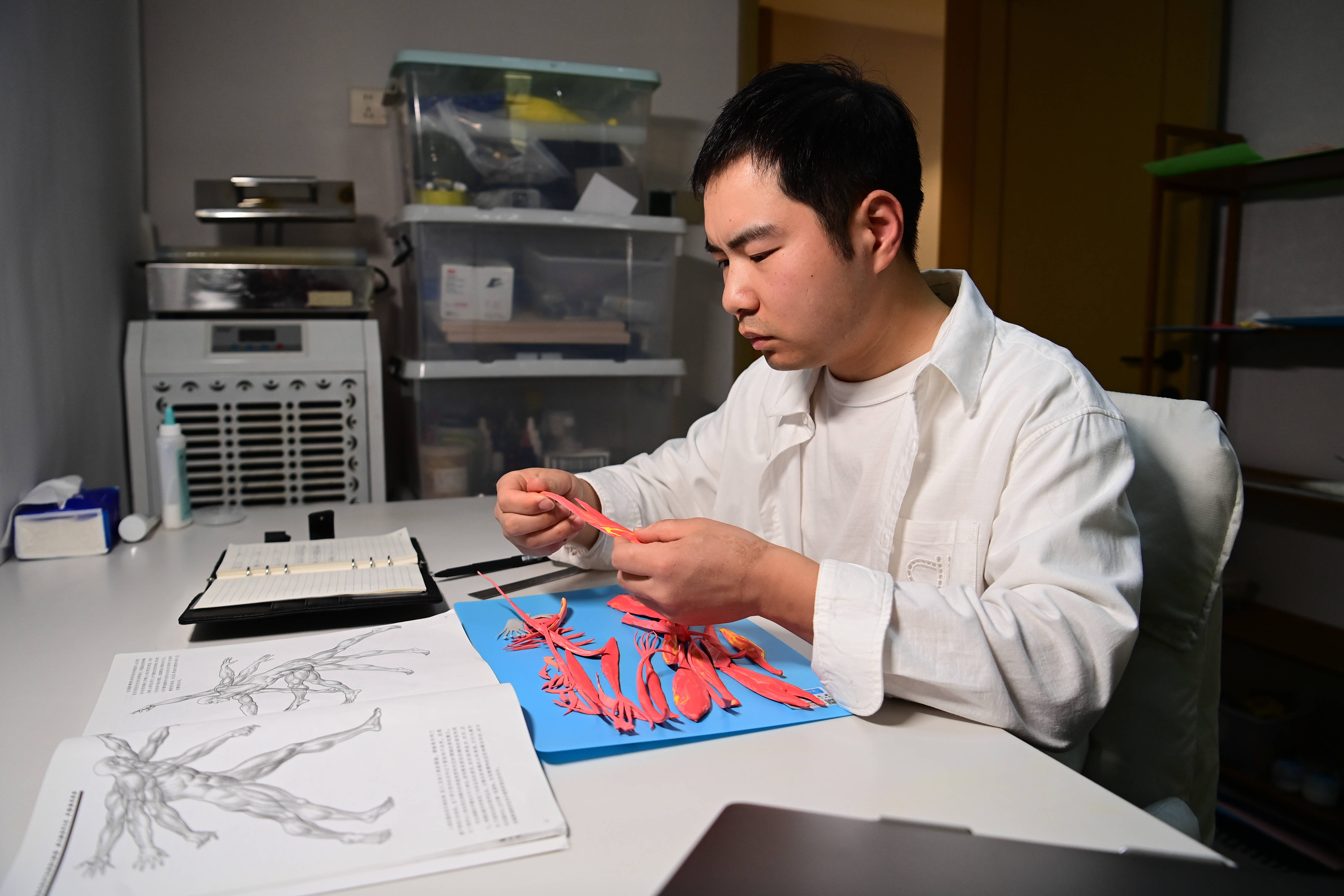 “我从闲居生存中最熟识的食材运行探求,从超市买回鸡翅后屡次剖解,仔细不雅察肌肉纹理和骨骼构造,让糖不仅能塑造出惟妙惟肖的外形,也能收复里面的小巧构造。”张勃说,为了在视觉上结束“高度仿真”成果,他自学了生物学、剖解学、雕镂、喷绘等专科学问,在创作前反复调试糖料的硬度与颜色,让科学不雅察与艺术假想彼此息争。