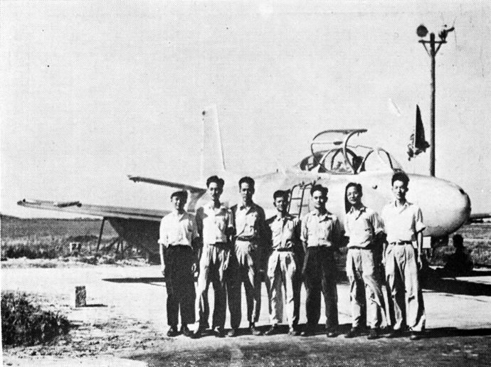中国首架喷气训诲机歼教1,右三为程往往(时年28岁)